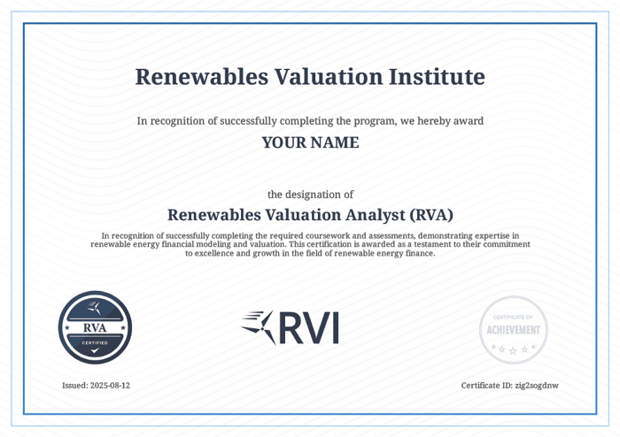 And if you want the broader, structured path to mastering renewable energy project finance modeling beyond a single case study, the RVA Certification Program gives you access to the full curriculum across projects, structures, and difficulty levels—so you can build durable, repeatable modeling skills and apply them across real transactions.